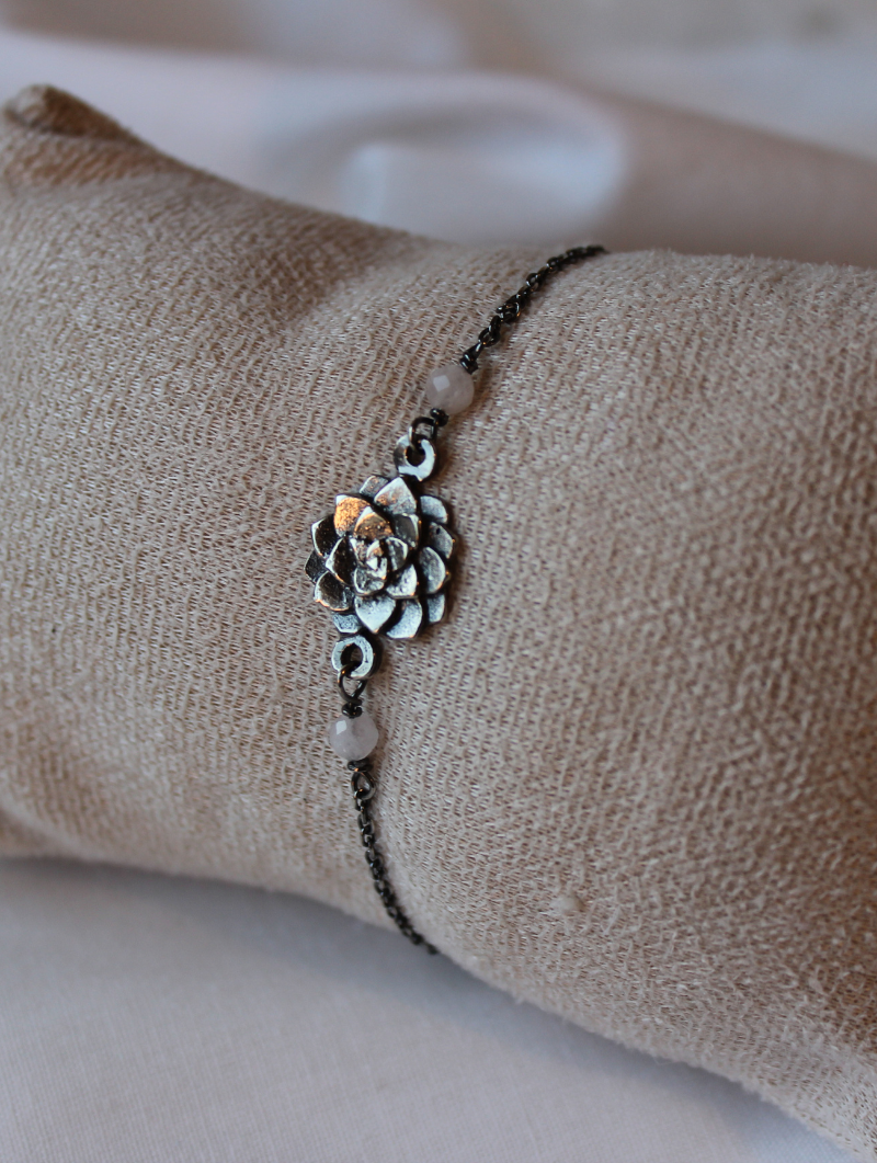 Pulsera Siempreviva Plata 1ª Ley y Piedras Naturales