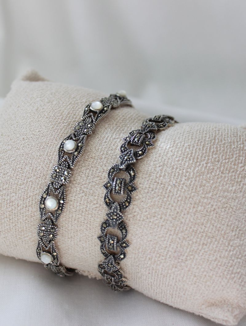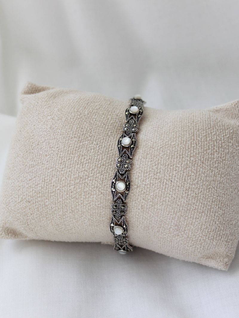 Hay joyas que no siguen tendencias porque no las necesitan. Esta pulsera de marquesitas es una de ellas. Su diseño de eslabones calados en plata envejecida tiene ese carácter clásico que no caduca, que funciona igual con un look casual que con uno de fiesta. Una pieza que se compra hoy y se lleva toda la vida.